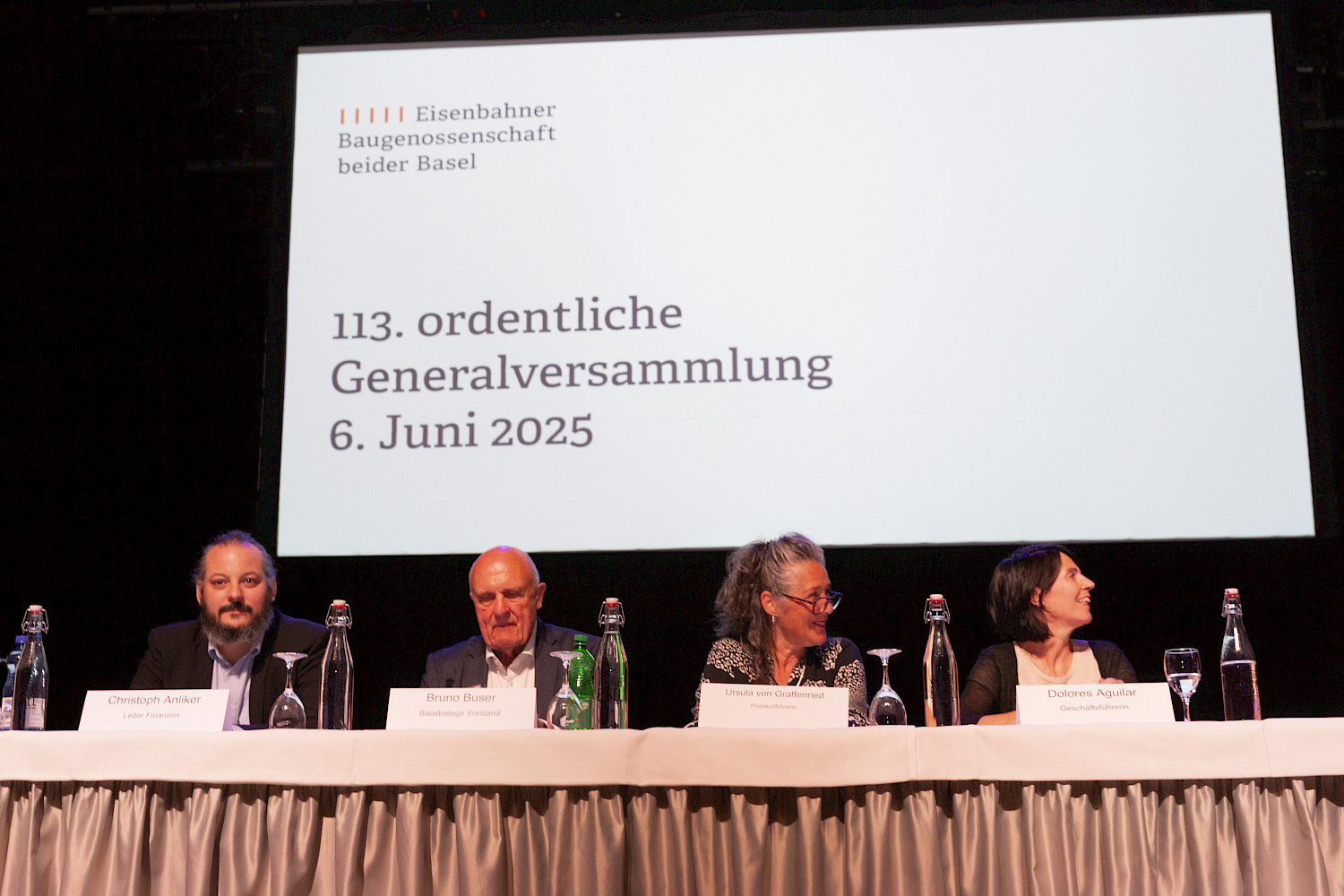 Am Freitag vor Pfingsten lud die EBG zur 113. ordentlichen Generalversammlung ins Volkshaus Basel ein. Zahlreiche Genossenschafter:innen, Neumieter:innen und Gäste folgten der Einladung und nahmen am Anlass teil.