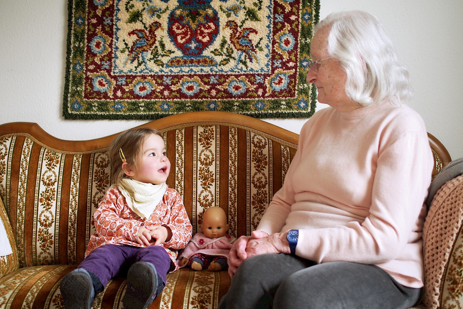 Tamara (37) besucht mit ihrer kleinen Tochter die bald 100-jährige Anna in ihrer Wohnung an der Birsstrasse. Anna erzählt, wie sie den Zweiten Weltkrieg in der EBG erlebt hat und wie anstrengend das Wäschewaschen damals noch war. Die zweijährige und die 100-jährige Anna verstehen sich blendend und posieren zusammen für die Fotografin. Tamara schildert die Begegnung.
