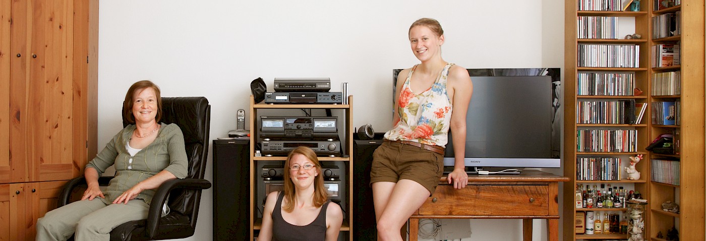 Sie engagiert sich darüber hinaus im neuen Projekt der Nachbarschaftshilfe. Dabei werden die unterschiedlichen Bedürfnisse der Bewohnerinnen und Bewohner abgeklärt: Wer leert den Briefkasten während den Ferien, wer giesst die Blumen, wer kann Einkäufe erledigen? Eine Gegenleistung dürfe dafür allerdings nicht erwartetet werden, so Conny. Dann ist eine Wohnungsführung angesagt. Stolz zeigt Salome ihre Dachmansarde. «Mein Zimmer ist das Herzstück der Wohnung», sagt sie ohne falsche Bescheidenheit. Tabea hält dagegen: «In diesem Chrüsimüsi könnte ich nicht leben. Für mich hat's da zu viel Sachen drin.» Sie selber wohnt einen Stock tiefer, im gleichen Geschoss wie die Eltern, die ihr dafür das grössere der beiden Schlafzimmer überlassen haben. «Ich durfte damals nicht nach oben, weil ich schlafwandelte», erklärt Tabea. Salome: «Du weisst gar nicht, was für Vorteile es hat, hier oben zu wohnen. Hier habe ich meine Ruhe.» Tabea: «Dafür kann ich mich unten ausbreiten.» Salome: «Hier oben hat es aber noch problemlos Platz für ein Gästebett ...»